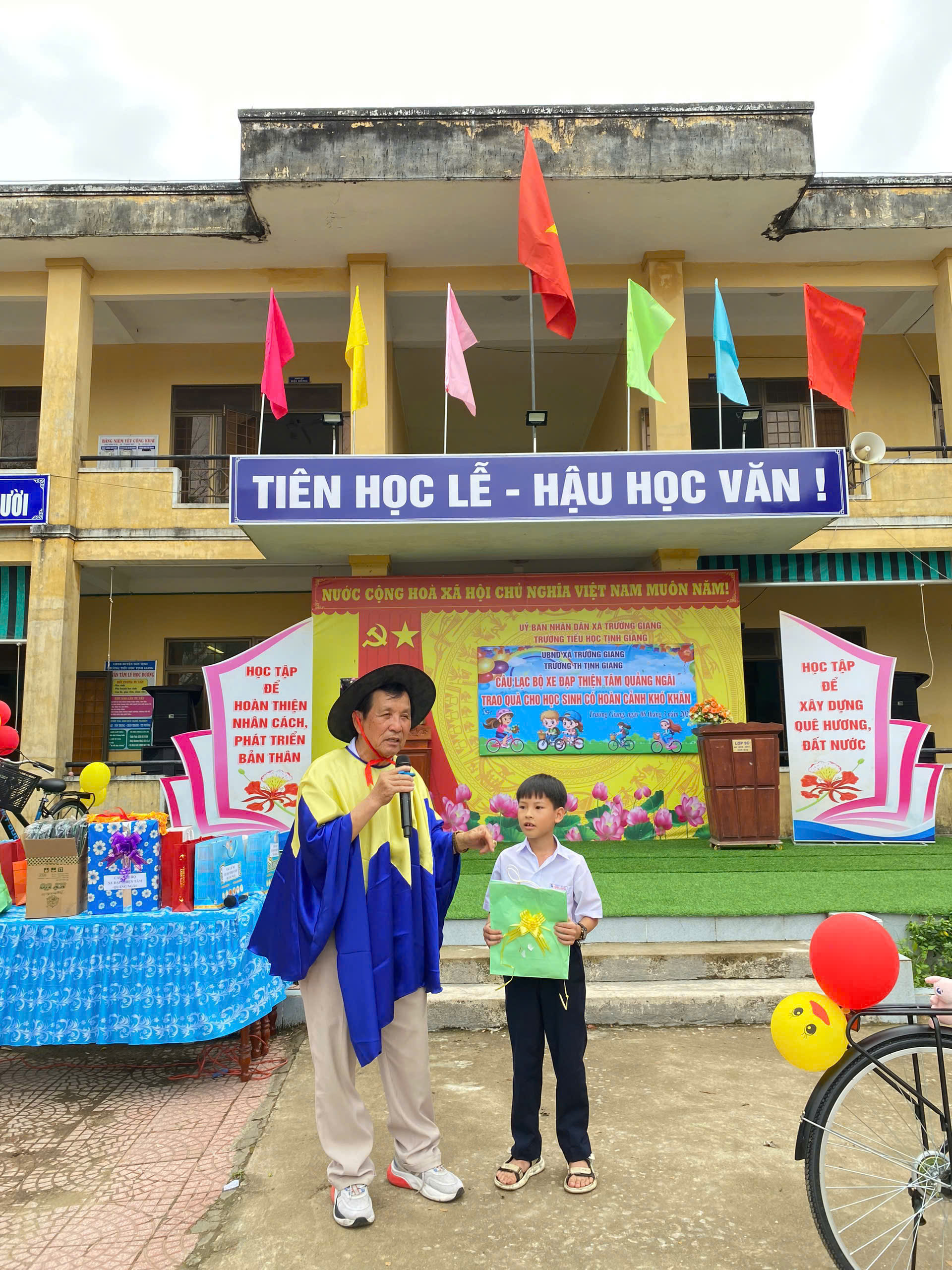 Chiều ngày 6/03/2026, Câu lạc bộ xe đạp Thiện Tâm đã trao quà cho học sinh có hoàn cảnh khó khăn tại Trường Tiểu học Tịnh Giang.